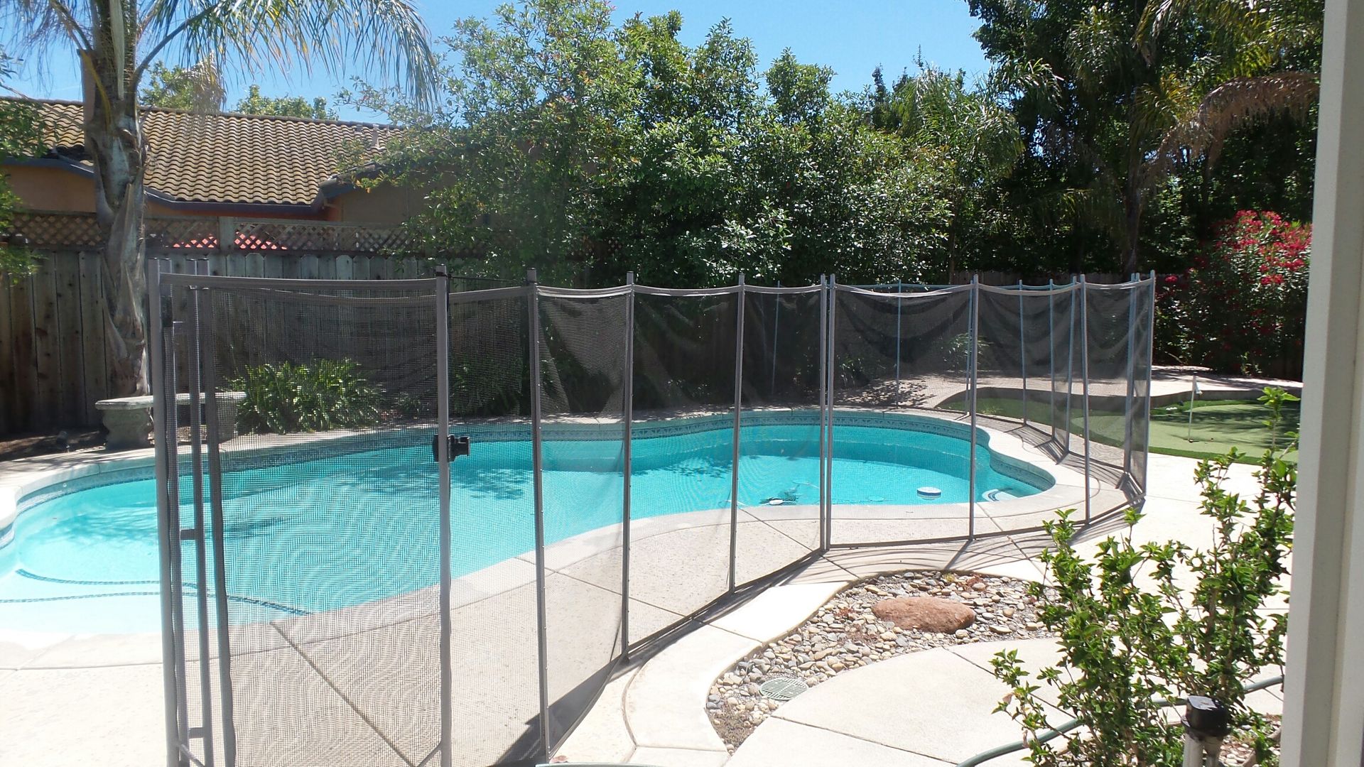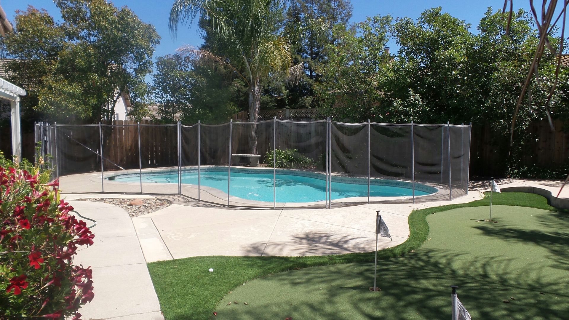 You will love the backyard~ Large, covered patio with access from the family room and master bedroom to this impressive, swimming pool (fenced) and a putting green for your leisure activities.