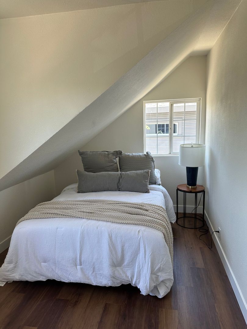 This upstairs unit features privacy, a spacious living room and a modern kitchen with tiled floors. The entire duplex has been fully renovated with new kitchen appliances, a new bathroom, and new flooring throughout. Secure off-street parking with a nice large backyard.